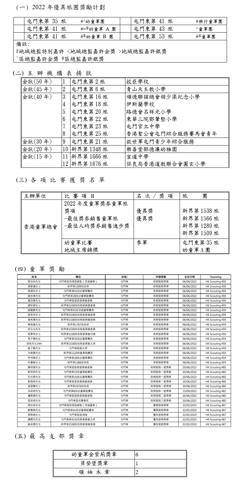 屯門東區區會網頁 / 獲獎名單